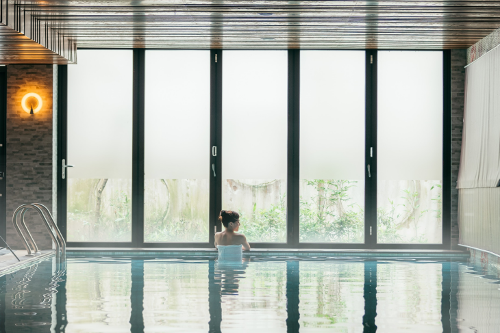 百坪的室內空間,設置男女三溫暖,溫泉池、水療池、常溫泳池、熱水池、冷水池及烤箱等設備完善,享受泡湯樂趣。