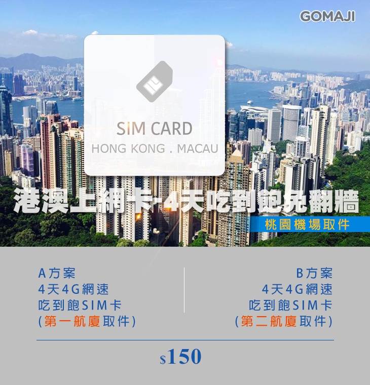 ● 港澳上網卡-香港澳門4天吃到飽免翻牆SIM卡