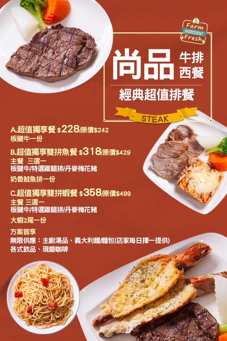 【尚品牛排西餐】感謝麻吉們熱烈搶購,已全數賣光光。