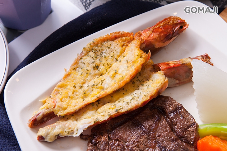 海陸饗宴讓您輕鬆就能擁有,金黃大蝦在口中散發著海味的鮮甜,而金黃起司的鹹香更是讓美味增添層次,佐以丹麥梅花豬的彈嫩可口,就算不沾醬也很美味!
