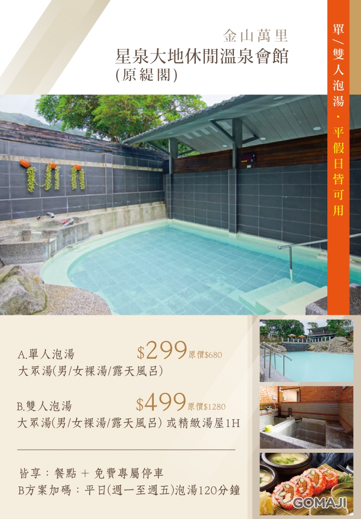 【金山萬里-星泉大地休閒溫泉會館(原緹閣)】感謝麻吉們熱烈搶購,已全數賣光光。