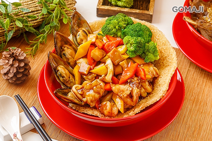 一端上桌,澎湃、精緻的擺盤讓人眼睛為之一亮!現炒鮑汁海鮮燴,用料新鮮、實在!鮮香美味在嘴裡完美乍現!濃稠滑亮的勾芡外衣,不僅讓佳餚菜色更亮眼,更為食材增添迷人風味!單吃或佐米飯品嚐,奢華饗宴,讓人一口接著一口、越吃越涮嘴!