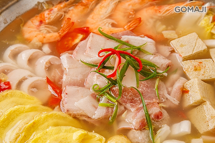 道地美味的東北酸菜白肉鍋,熱騰騰上菜囉!以正統東北酸菜加入高湯烹煮而成的湯底,香醇順口!與各式鍋物料巧妙地交織成獨特、迷人的風味喲!酸酸甜甜、暖心暖胃!無論四季來上一份,幸福滿分!