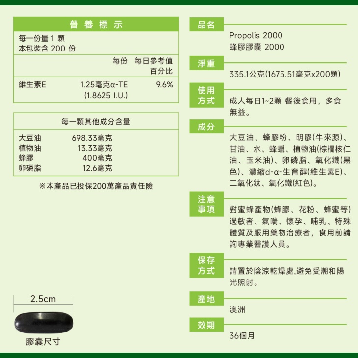 蜂膠膠囊2000mg 1瓶(200顆/瓶)