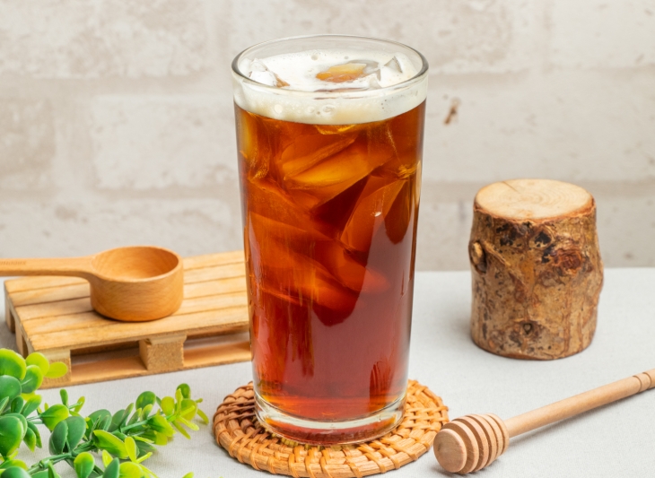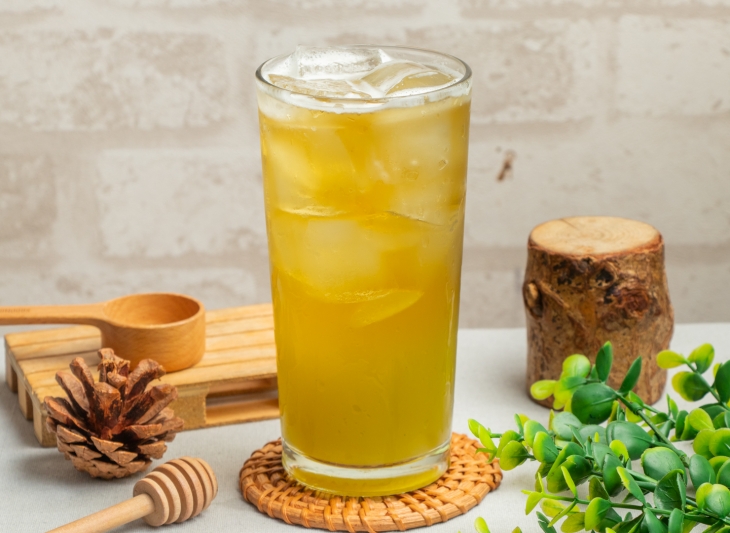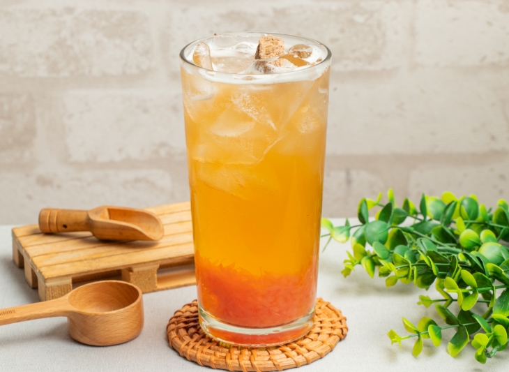 金琥珀色茶湯晶亮透澈,杯底鋪滿紅柚果粒,酸甜香氣明快俐落。入口先是清爽柑橘調,隨後果香與茶韻交織,尾韻帶著微微清苦更顯乾淨。每一次攪拌都能喝到細碎果肉的活潑彈跳,冰涼沁脾、解膩提神,夏日午後來一杯,清新感直線上升。