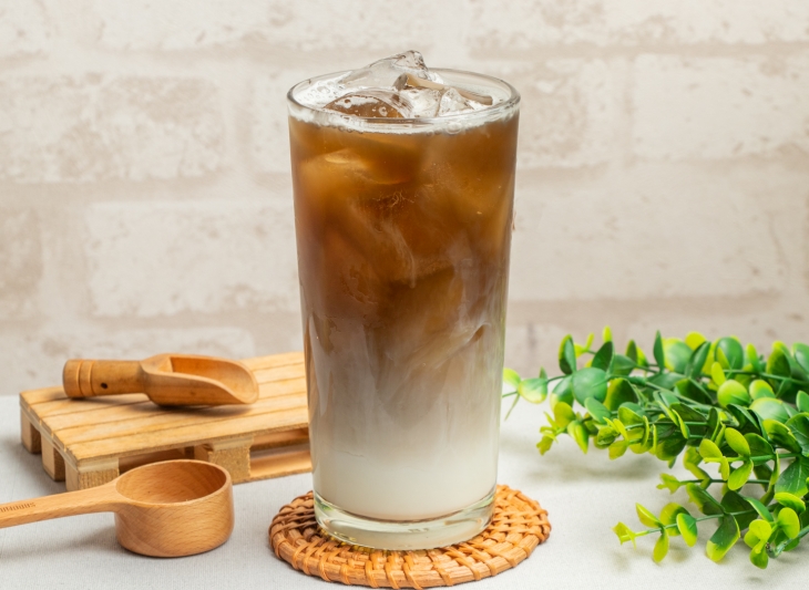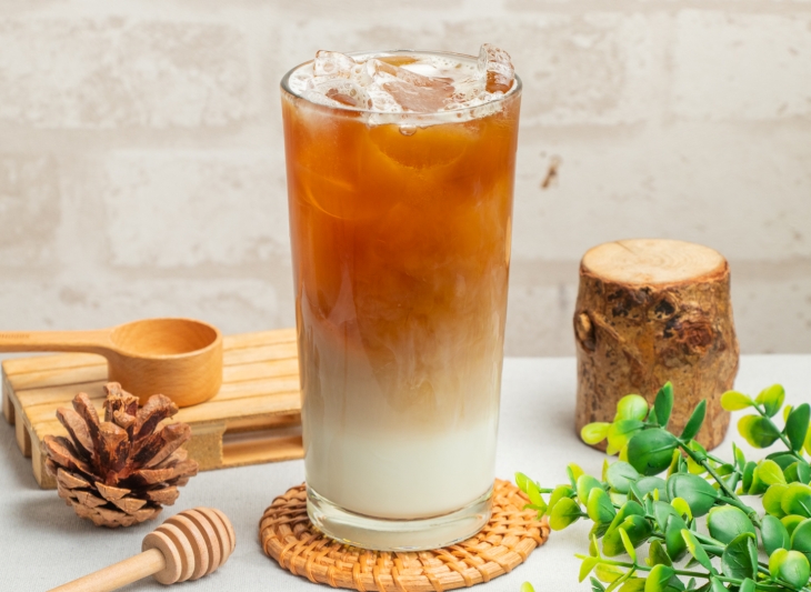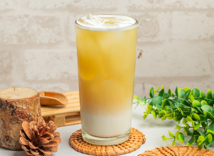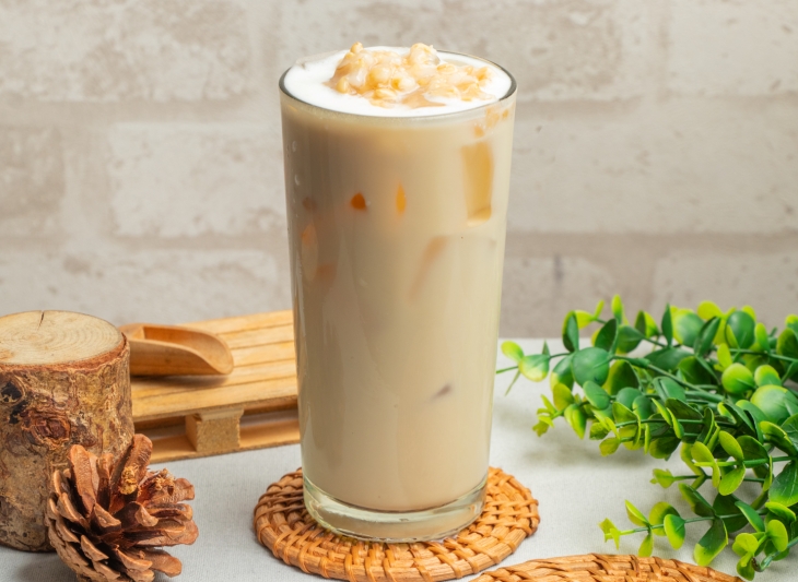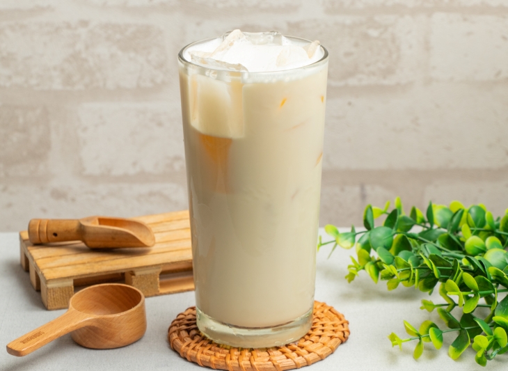 乳白色澤溫潤透亮,綿密奶泡輕覆杯面,拌入淡雅麥香,口感柔滑如絲。第一口清爽、第二口醇厚,甜度圓潤不黏膩;冰塊緩緩化開,層次從淡香到濃郁逐步展開。植物系的清新與奶香的細膩交疊,既療癒又輕負擔,是午後想放鬆時最溫柔的一杯。
