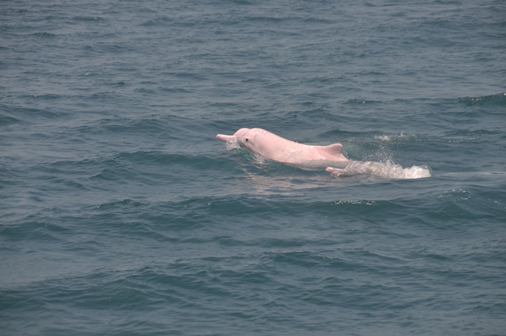 (粉紅色的白海豚在台中梧棲-林文吉拍攝)