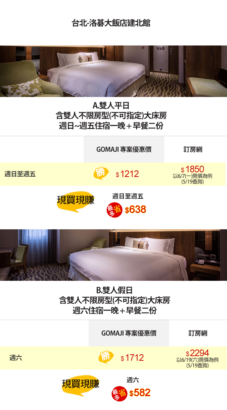 【台北-洛碁大飯店建北館】感謝麻吉們熱烈搶購,已全數賣光光。