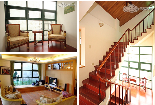 客廳位於一樓,設有電視、卡拉ok、DVD放映機等配備,是大夥相聚聊天的好所在,與好友來個歌唱比賽,盡情高歌一曲吧!