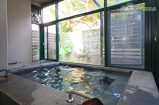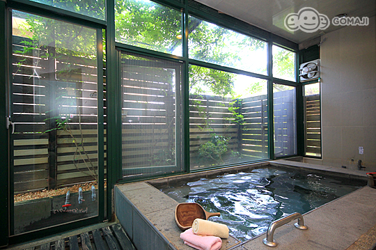 民宿內的溫泉採獨立原頭取泉,並有兩大兩小頂級觀景石砌雕而成的溫泉浴池,利用大片落地的玻璃設計,寬敞又舒適的感官饗宴,提供你一處專屬的泡湯空間。