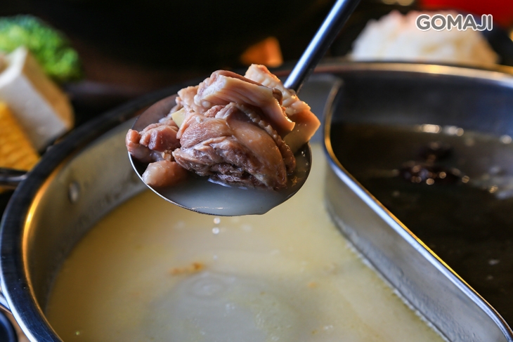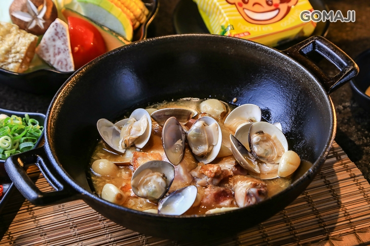 特選土雞腿肉略煎至微焦色澤,完美地鎖住肉汁,保留雞肉原有的甜味,並使用大量蒜頭拌炒一番,將蛤蜊的鮮甜完整釋放,更提升湯頭口感,接著加入以天然蔬果熬製而成的高湯,層次相當豐富,濃郁的蒜香撲鼻,勾勒出雞肉的鮮美多汁,口感清甜爽口,搭配各式食材都極合拍!