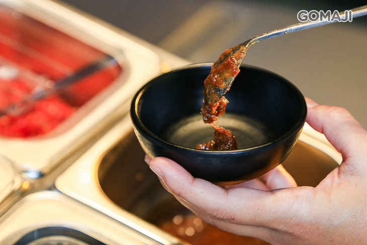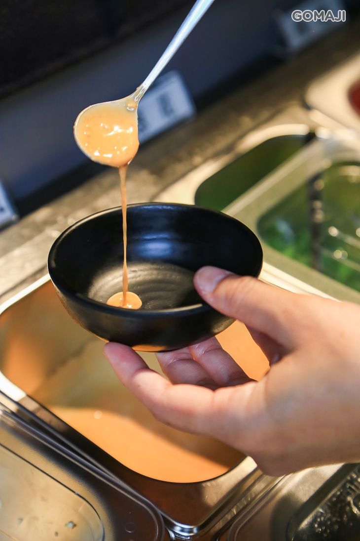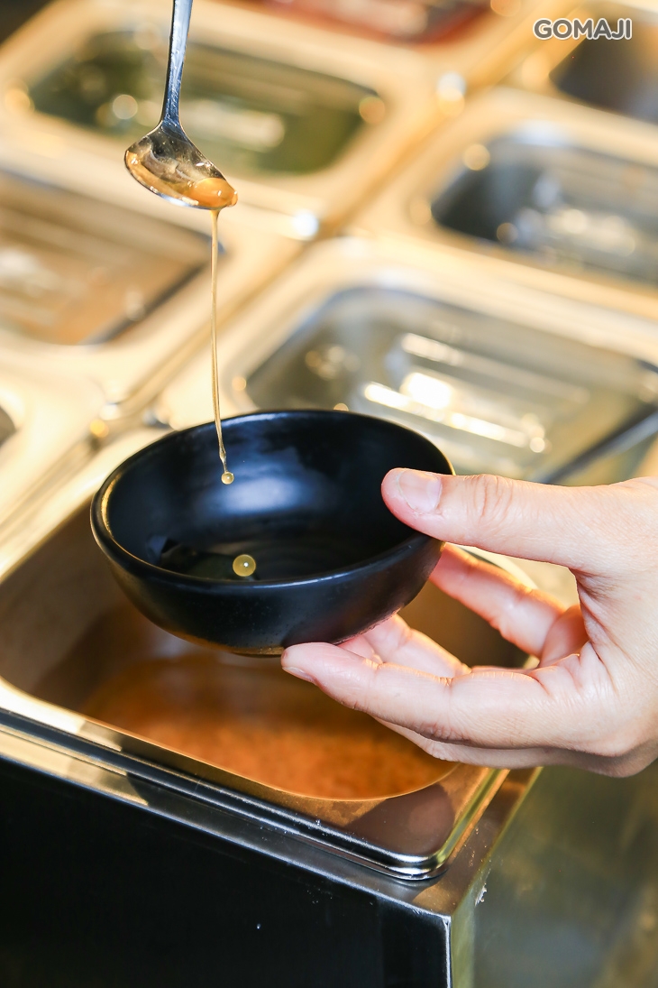 主廚特調沙茶醬,加入扁魚、魷魚調和,以金鉤蝦提味增香,最後加入花生粉,讓沙茶沾醬的風味層次更提升,適合搭配各式肉品及海鮮。