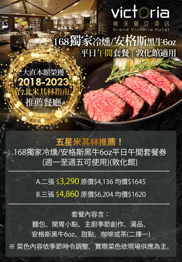 限量!五星米其林推薦!168獨家冷燻/安格斯黑牛6oz平日午間套餐券(週一至週五可使用)(敦化館)