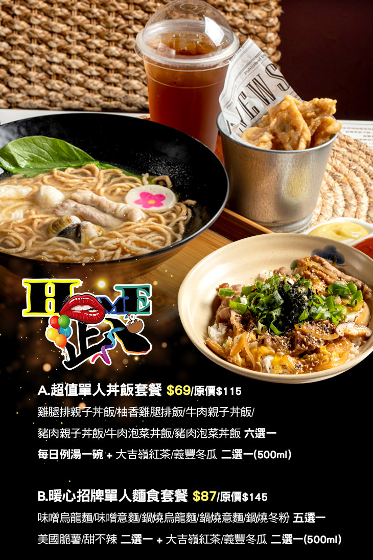 B.暖心招牌單人麵食套餐