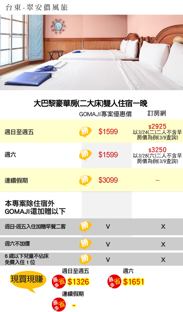 【台東-翠安儂風旅】感謝麻吉們熱烈搶購,已全數賣光光。