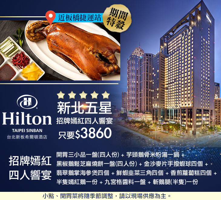 【Hilton台北新板希爾頓酒店-QING YA青雅中餐廳】感謝麻吉們熱烈搶購,已全數賣光光。