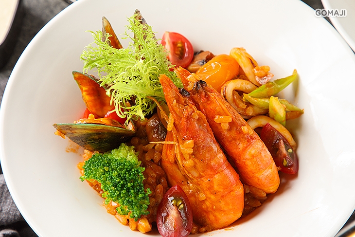選用不同於一般的蕃茄醬,將蝦子的鮮味和蔬菜的甜味一起熬煮成濃郁醬汁,並以義大利米精心費時熬煮,每一口都有滿滿的鮮味,令人意猶未盡的美味,喜歡海鮮的你絕對不能錯過!