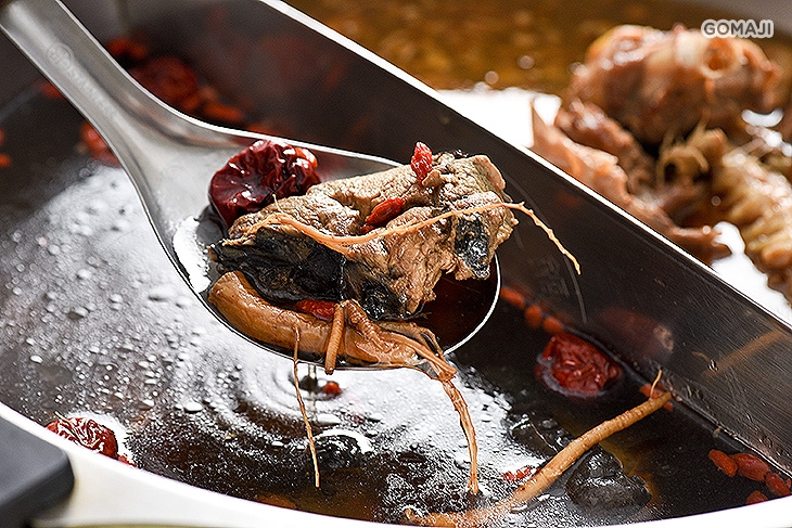 黑蒜頭是使用新鮮蒜頭發酵而成,因為成品顏色黝黑,又有「烏金」的美名。取大量黑蒜與烏骨雞一起燉煮,肉質極度軟嫩,黑蒜頭更帶有些微焦糖甜香,懂吃的你千萬別錯過!