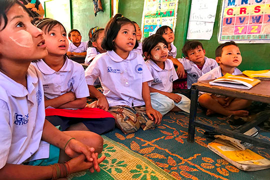 來自台灣的Glocal Action全球在地行動公益協會,持續資助泰緬邊境「緬甸移工子女學校」,培訓並聘任當地青年擔任教師,依照緬甸課綱進行教學,為弱勢孩童提供珍貴的教育機會,並給予最重要的照顧及保護。