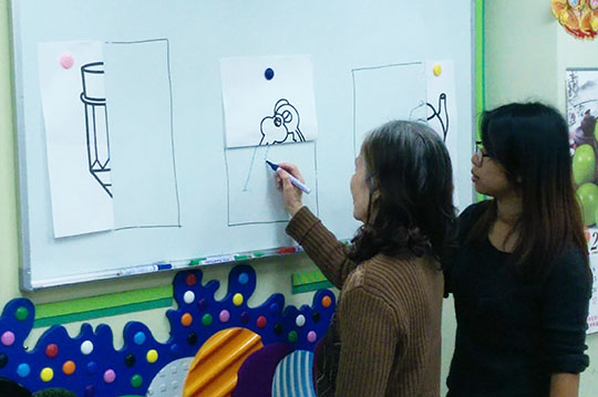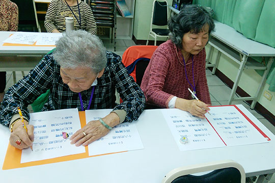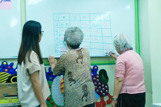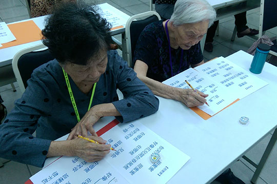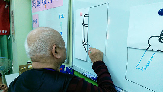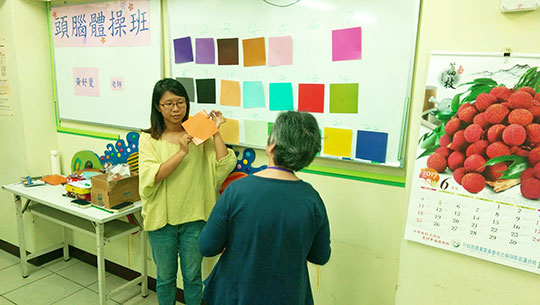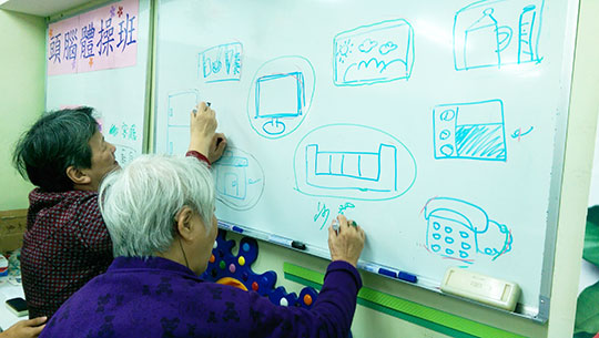 二、頭腦體操班:透過認知活動,感官刺激、現實導向等刺激思考,延緩失智症造成的退化。