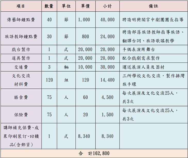 (透過排灣語手偶劇團練習與展演,增進學生生活經驗及眼界)