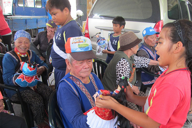 (老幼共學,向長輩及耆老學習部落的傳統文化,一代一代傳承下去)