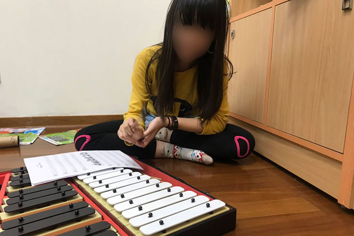 小承為聽障孩童,今年剛升上小學一年級,曾在早療階段接受口語課程及聽力治療,但因過了早療補助階段,小承爸媽沒有能力繼續負擔全額費用因而中斷治療,後來聲暉的社工與班導師了解小承學習情形時,同時發現因其聽力問題而導致學業落後,也較難融入團體生活,經社工的協助而加入音樂治療團體班,現在小承正努力趕上同學們的腳步,家長也不再感到自責與無助。
