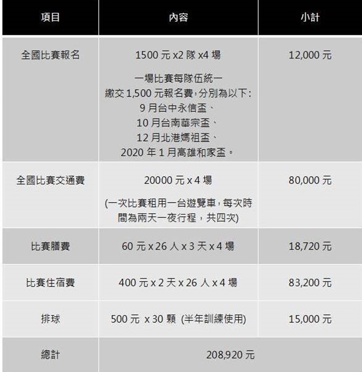 您的100元將100%用於【一起夢想-尋『球』夢想】公益專案:讓家境貧困卻擁有排球天分的原住民小孩有機會外出比賽,也讓孩子有足夠的糧食與經費,繼續奮力在球場上,實現每一個小孩的小小夢想。本專案募款208,920元服務26位,款項使用期間為2019年5月1日至2020年4月30日。