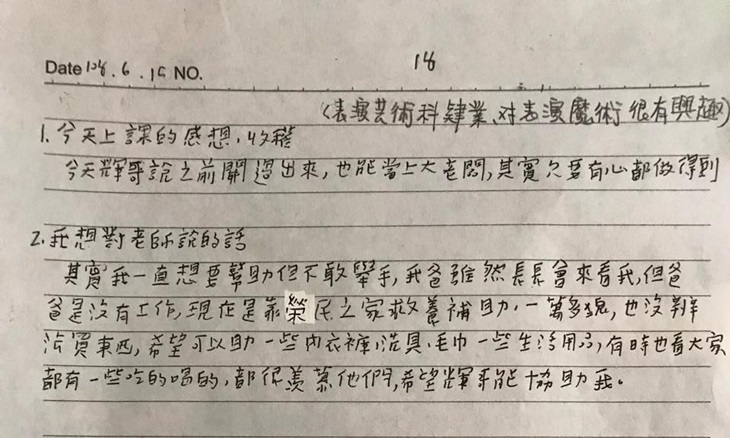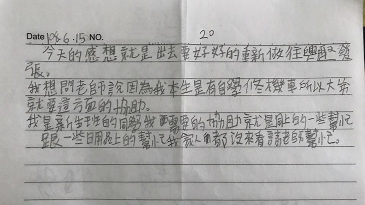 (接受感化教育的孩子,需要自費購買生活用品。然而一些沒有親人關心探望的孩子,生活拮据無力購足用品,黃絲帶關懷協會在了解孩子的狀況之後,會在能力範圍之內給予援助。)