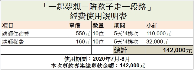 *本專案共募集四梯次偏鄉音樂品格營費用: