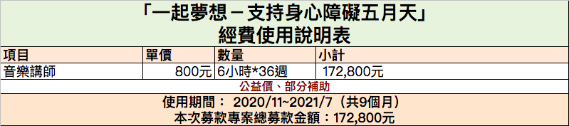 您捐贈100元全額100%轉予微型社福於本專案使用,一起夢想吸收募款所有作業與金流費。