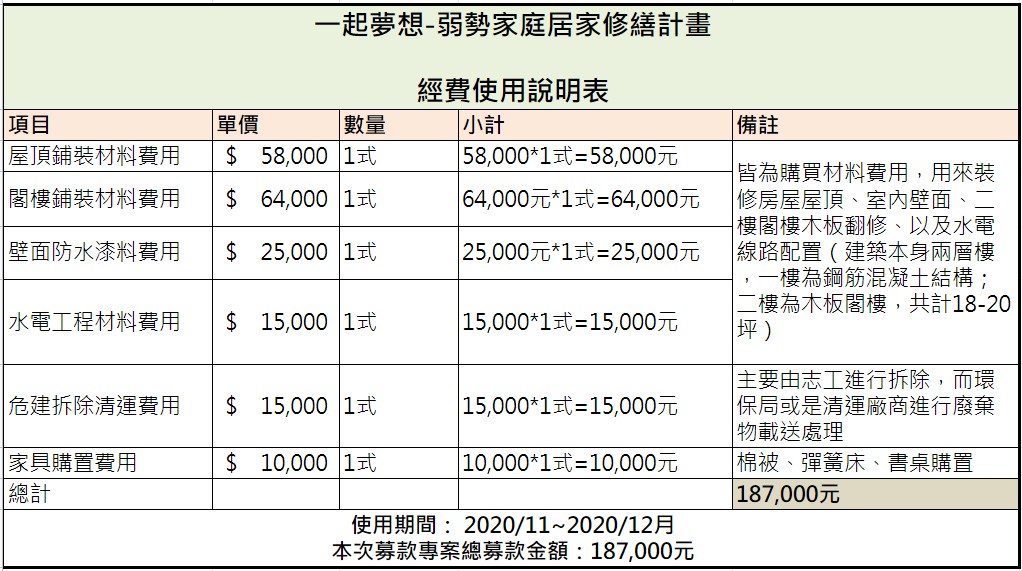 一起夢想-弱勢家庭居家修繕計畫