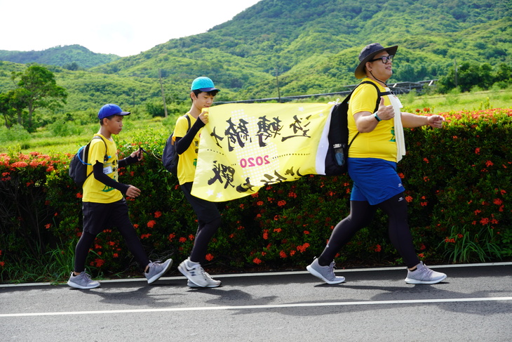 「健行第4天上午,也就是最後一天,當天早上我的體力已達到極限,幾乎要崩潰了,老師陪伴我停在路旁休息一下,並為我的身體禱告,之後,他判斷我已無法再走了,請求後勤支援,我只好先乘坐保母車到午餐地點,但中午休息之後,下午的健行我就不想再放棄了,我一面心裡祈求上帝幫助我,一面咬著牙忍耐繼續走著,雖慢些,但我不放棄,因為我想要挑戰人生極限,堅持達成目標,最後我也真的完成了,真的讓我好高興!」