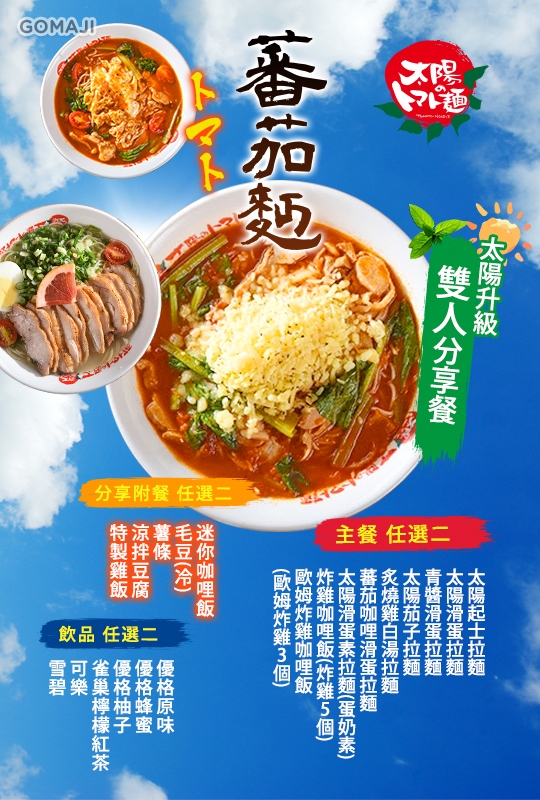 真的假的?聽說 GOMAJI 談到太陽蕃茄拉麵的合作?我原本都刪 APP 了,我超愛吃這家拉麵的,不是鹹到讓人舌頭發麻、退避三舍的那種。尤其是蕃茄的陣陣清香與酸溜溜的甜蜜感,吃多也不會感到身體有任何負擔。我真傻,以為要搶便宜才需要逛夠麻吉,重新下載了 APP 才發現自己好傻好天真,好多知名品牌、質感小店一間一間輪番上陣,不分享一下怎麼行?