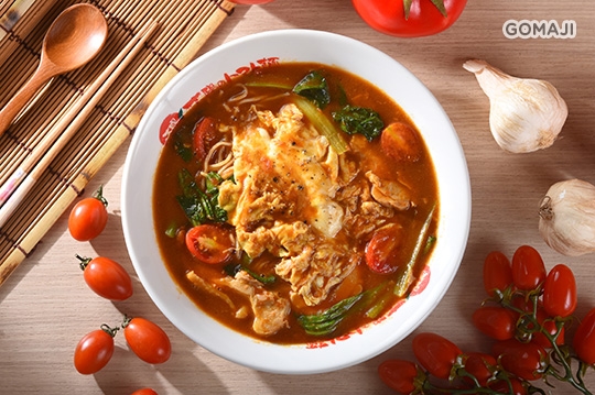 甫上桌,立刻秒懂什麼叫作〝溫暖〞滋味。絕對不是用粉泡。悉心費時熬煮,一點一滴慢熬出大自然的香潤氣息,吐納之間充斥著蕃茄的新鮮。創意增添起士的幾分好味,濃淡之間恰如其分,麵條也十分講究,軟中帶硬,讓懂品味拉麵的你 / 妳,絕不會輕易感到失望。