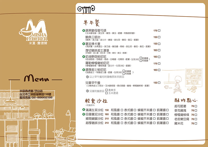 台北市士林區福華路 118 號的米夏.費德爾,鄰近捷運芝山站,專營美味的歐風料理,此外還提供輕食,超人氣的超厚豬排沙拉、韓式泡菜雞腿佛卡夏等樣樣經典,道道推薦。