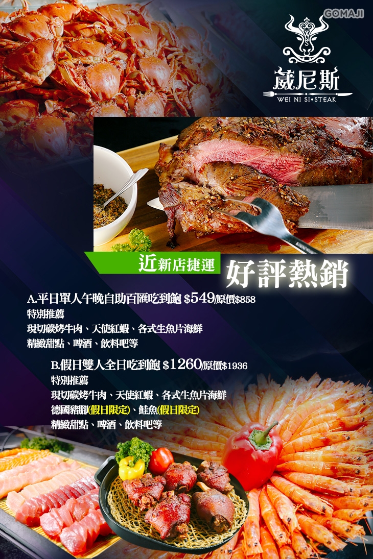 位於新北市新店區北宜路一段 3 號 2 樓的葳尼斯自助百匯火鍋吃到飽,鄰近捷運新店站,專營超澎湃的山珍海味吃到飽,無論冷盤、熱菜,還是精緻甜點,樣樣豐富齊全,本次推出平日單人午晚餐自助吃到飽方案,誰說新店沒有?