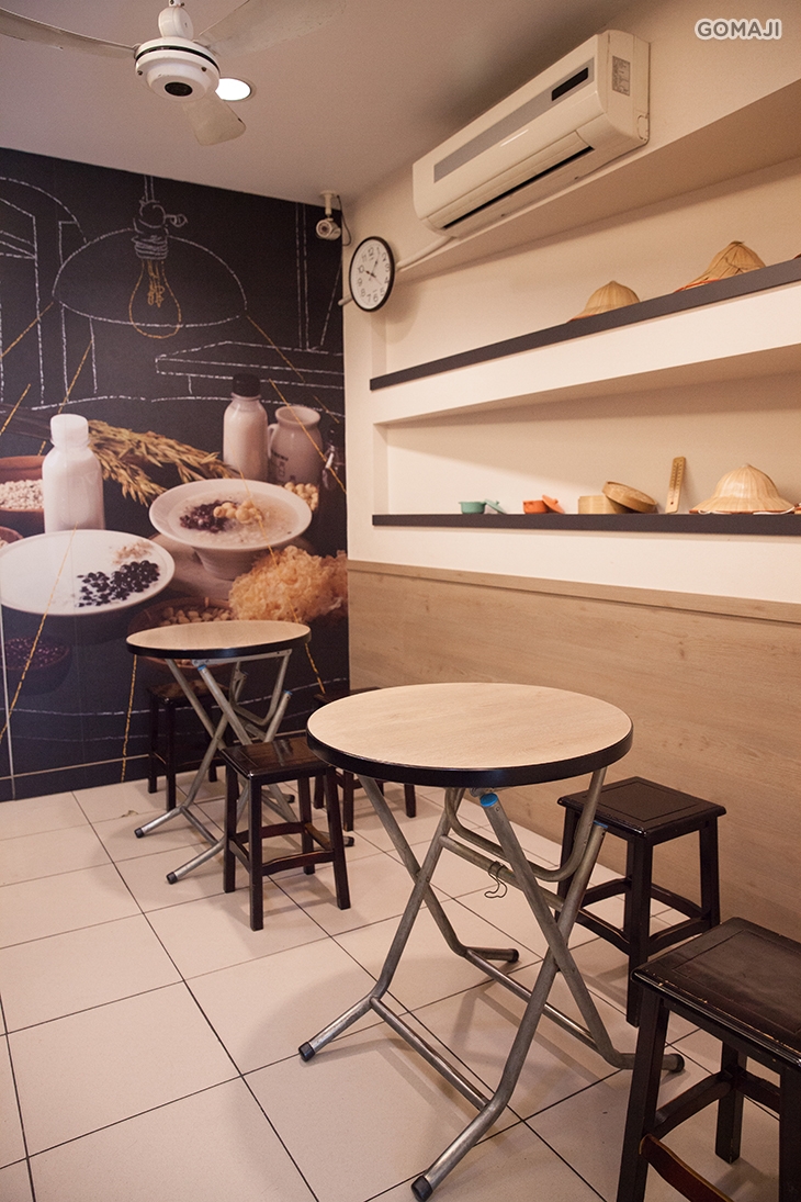 有注意到嗎 ? 牆上的層櫃中,用了許多古早味的生活用品,如斗笠、小籠包的籠子及可愛的鍋碗盆作為裝飾,完整呼應了古薏人的品牌理念。