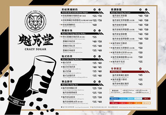 特別推薦:豹紋黑糖珍珠鮮奶、魁艿堂芋見泥、泰式黑糖珍珠奶茶、魁艿堂桑椹冰茶、魁艿堂紅豆鮮奶、魁艿堂紅茶歐蕾、黑糖珍珠奶茶