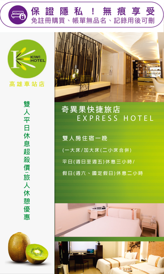 【高雄-奇異果快捷旅店(車站店)】感謝麻吉們熱烈搶購,已全數賣光光。