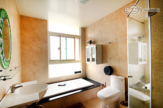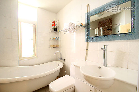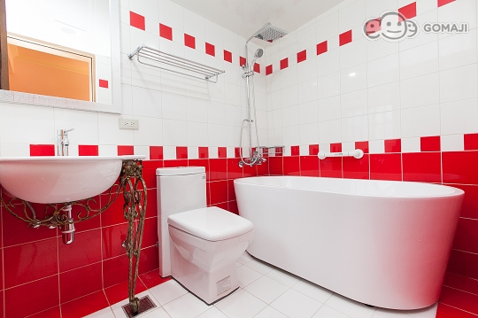 可愛的弧線形浴缸,進口高優質設施,明亮的空間使得整個浴室被光線所佔據,洗淨一身疲勞的身軀,同時也享受著大自然的日光浴!