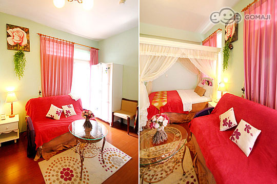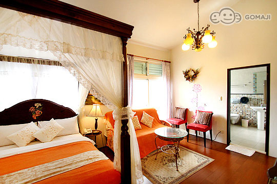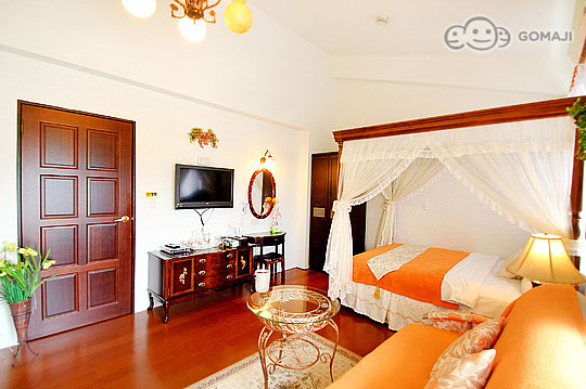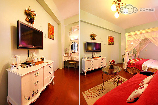 精緻浪漫的公主套房,彷彿進入中世紀的奧地利宮廷裡,紅色喜氣洋洋的桌椅,房間已經替妳備妥咖啡包、茶包等用品,可以邀請妳坐下來與我來場午後甜蜜的茶會了嗎?還是半夜一起依偎在被窩裡收看DVD,也別有情調。