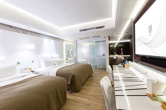 全館皆使用來自英國的斯林百蘭皇室名床,以及YAMAHA 5.1聲道藍芽喇叭,營造出3D擬真的環繞音效,而女孩最在意的吹風機,更挑選了知名品牌Panasonic 吹風機,一切的貼心服務只為給您尊榮級的絕佳享受。