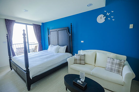 高雅的蔚藍色系讓人多了份安心感,感受一下這空間的優雅和沉靜,舒服的睡一晚吧!