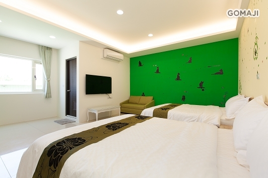 寬敞幽靜的四人房型,潔白清爽,典雅簡約的擺設營造鄉村獨有的悠閒風情,讓麻吉們伴著清風享受難得的假期時光。