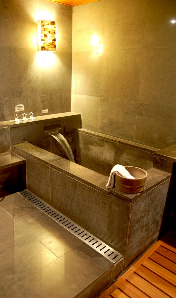 九種 SPA 功能池與庭園造景融合,包含親子戲水池、沖擊 SPA、氣泡浴、浮浴、冷水池、寢浴、石板浴、超音波池等。感受溫泉池的不同風情,依季節調整泉溫及供應冷泉,恣意體驗享受!