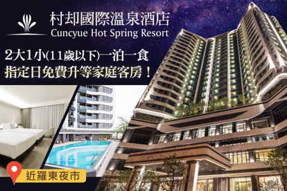 雙人/親子二大一小(兒童11歲以下)一泊一食,指定日免費升等家庭客房,贈星空酒吧抵用券