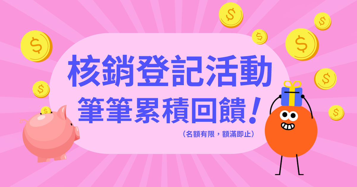 - 核銷金額:以實際付款金額計算(含購物金)。