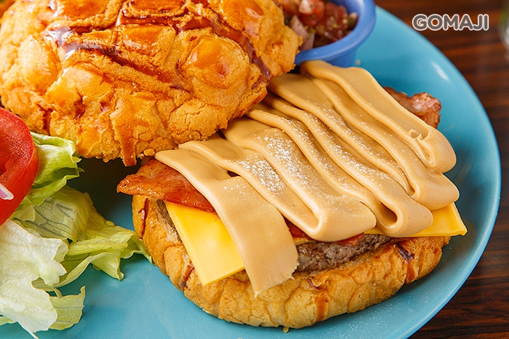 厚厚一層香濃甜滑的花生醬搭配鹹香牛肉排,佐以起司與培根,再以菠蘿麵包包夾這豐富用料,相輔相成帶出鹹甜醇香交融的迷人美味,越吃越涮嘴!