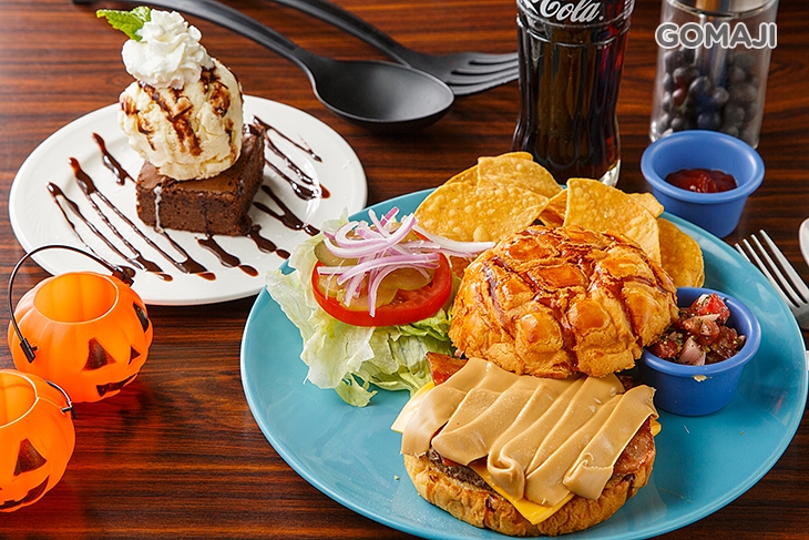 〈明星熱銷主餐:花生醬起司培根漢堡(澳洲純牛肉/轟炸雞柳)/墨西哥辣肉醬漢堡(澳洲純牛肉/轟炸雞柳)/明太子鮮蝦奶油培根麵/甜酒醬炸雞奶油培根麵 任選一 + 飲品/濃湯:紅茶/奶茶/可樂/雪碧/主廚濃湯 任選一 + 幸福甜點:冰淇淋布朗尼一份,漢堡可選:沖繩麵粉漢堡蓋(香酥菠蘿/美式漢堡麵包 二選一)+附餐:薯條/薯泥/玉米脆片 三選一〉